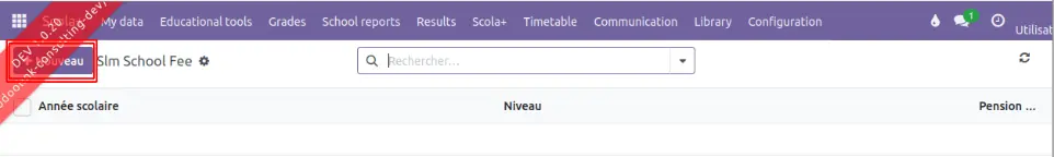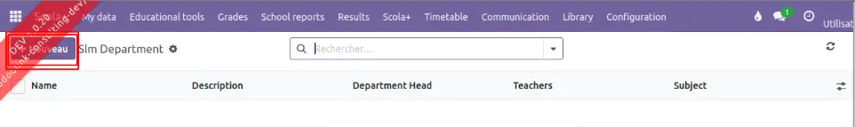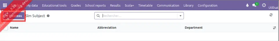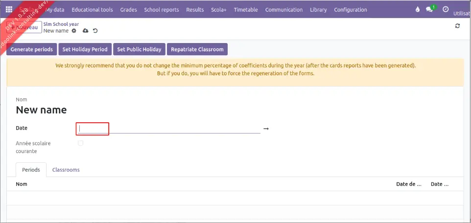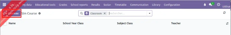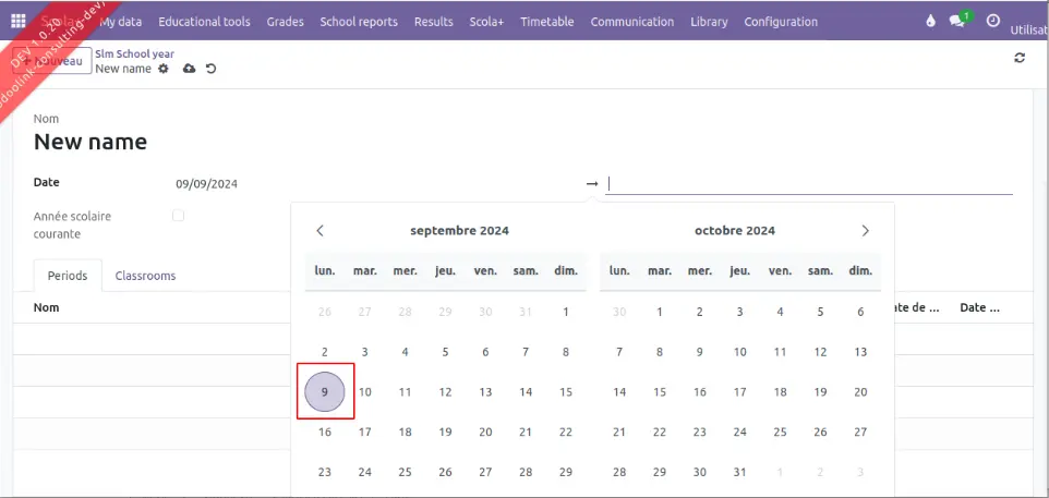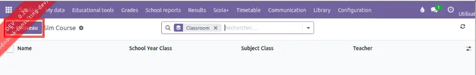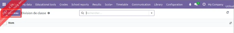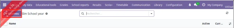 3. Sur la page Academic year (année scolaire), cliquez sur Nouveau. (Voir Image 3)