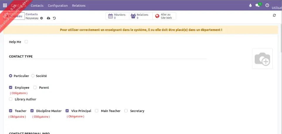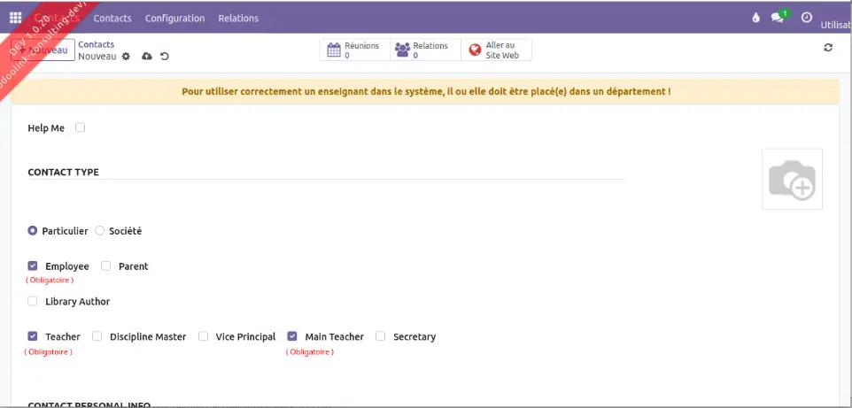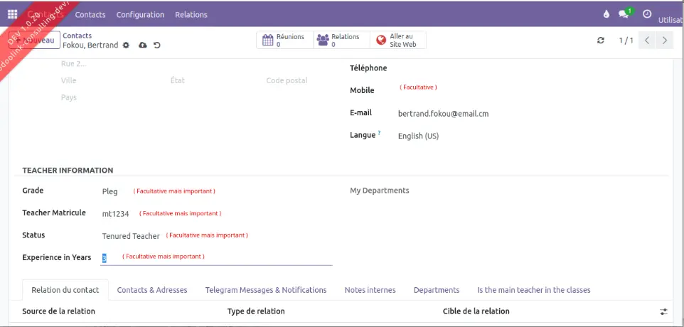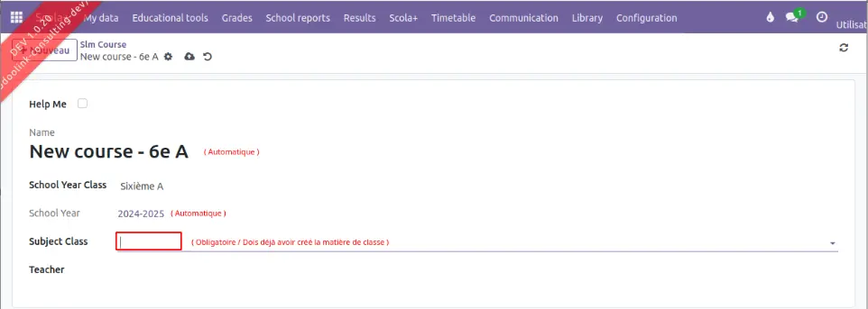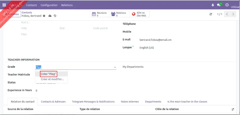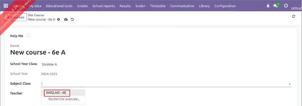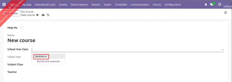 3c) Assurez-vous d'avoir déjà créé l’enseignant avant de le sélectionner..(Voir Image 3, 4,