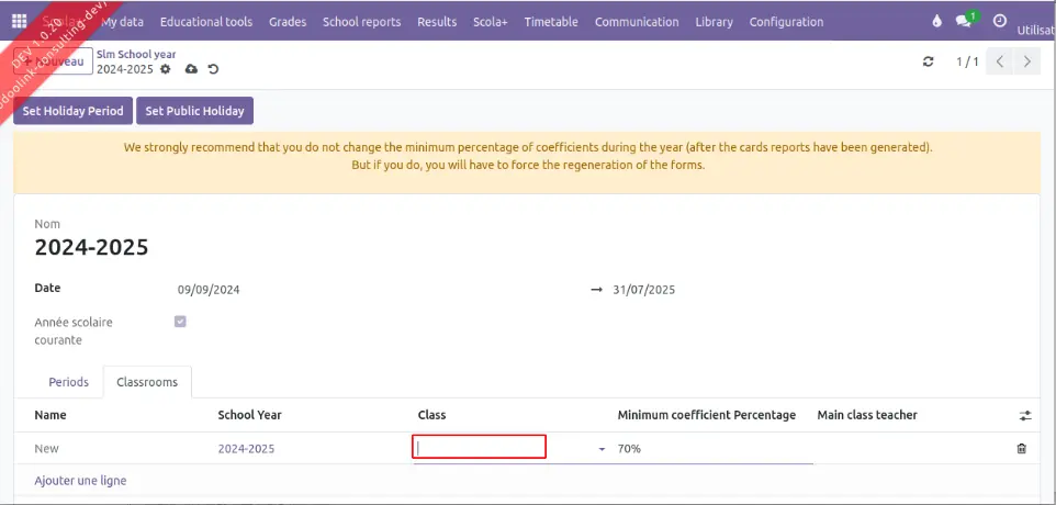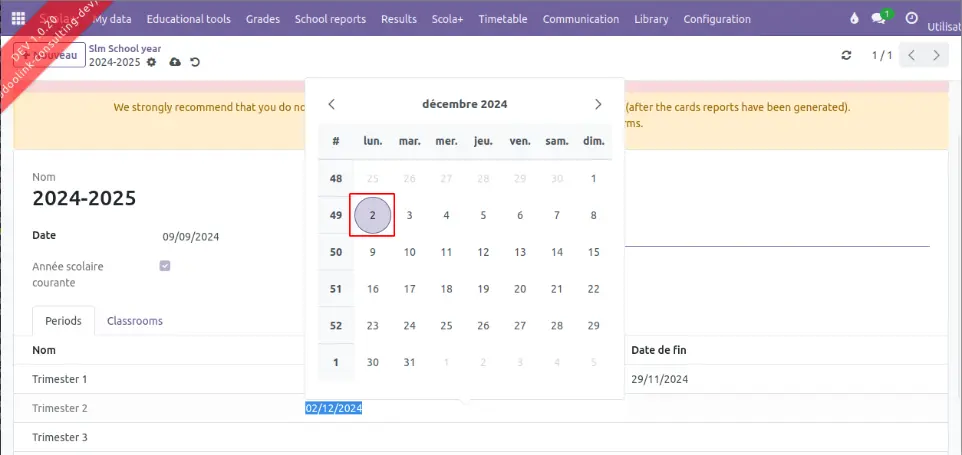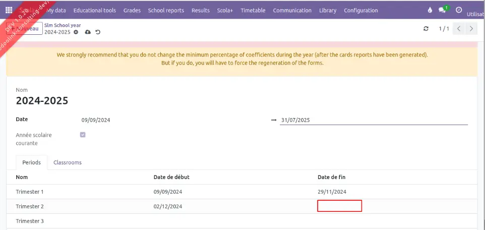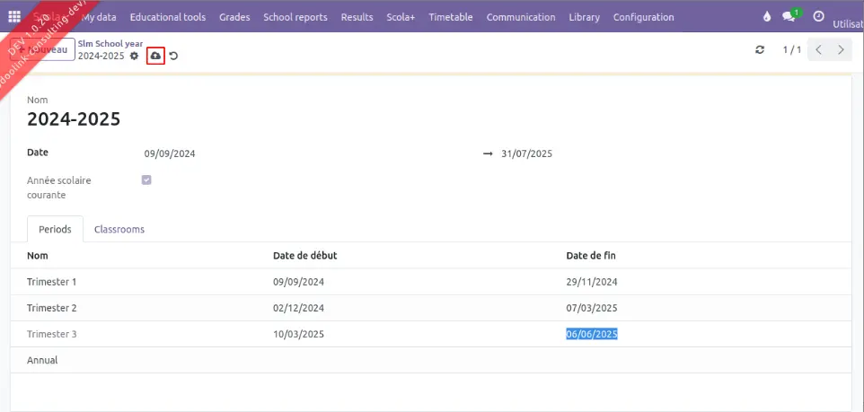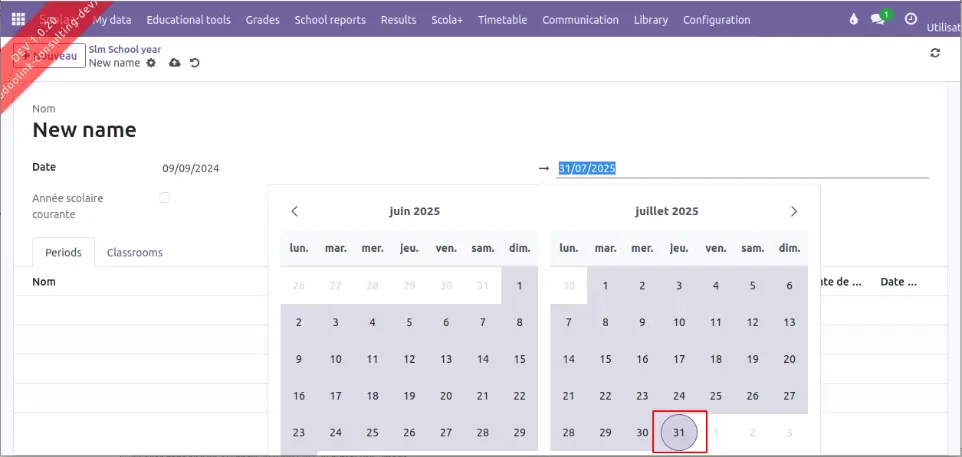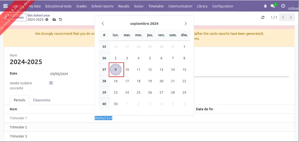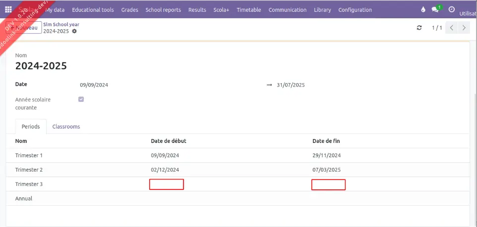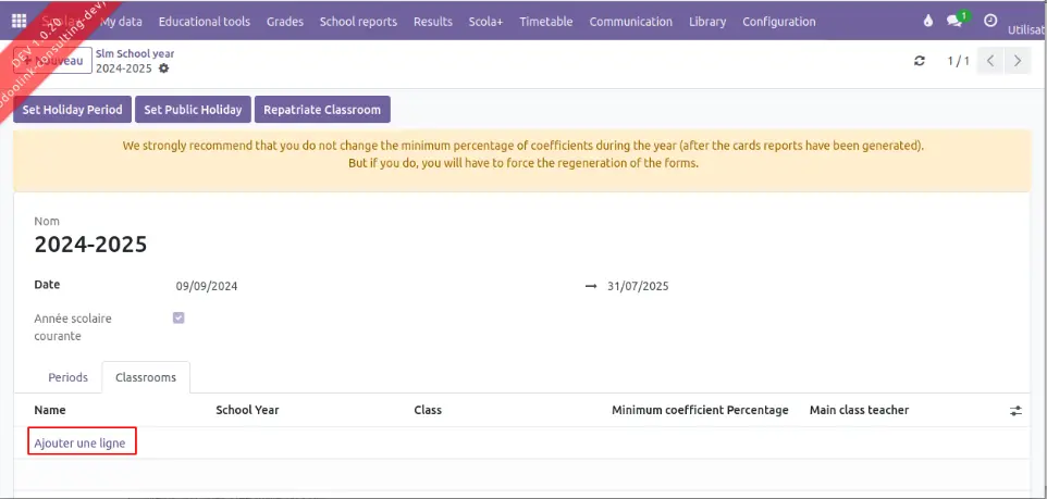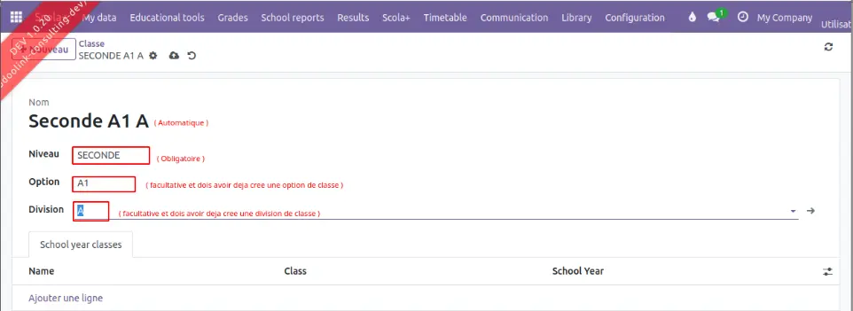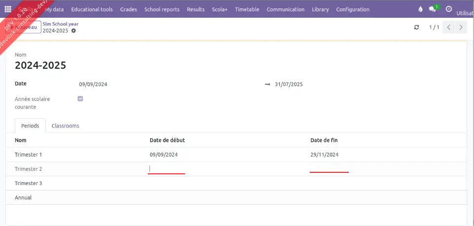 2a) Assurez-vous d'avoir déjà créé l’année scolaire avant de le sélectionner.