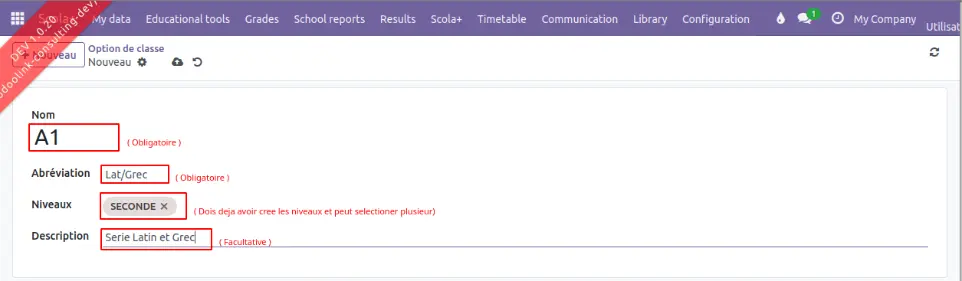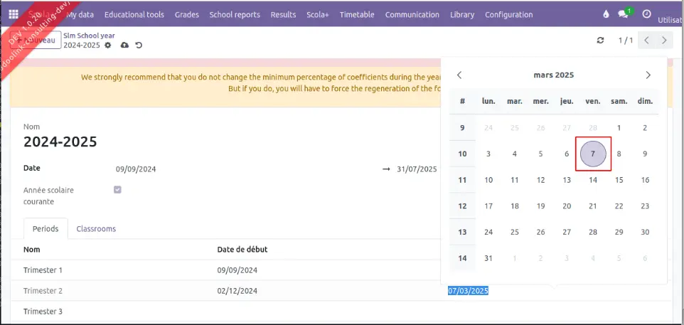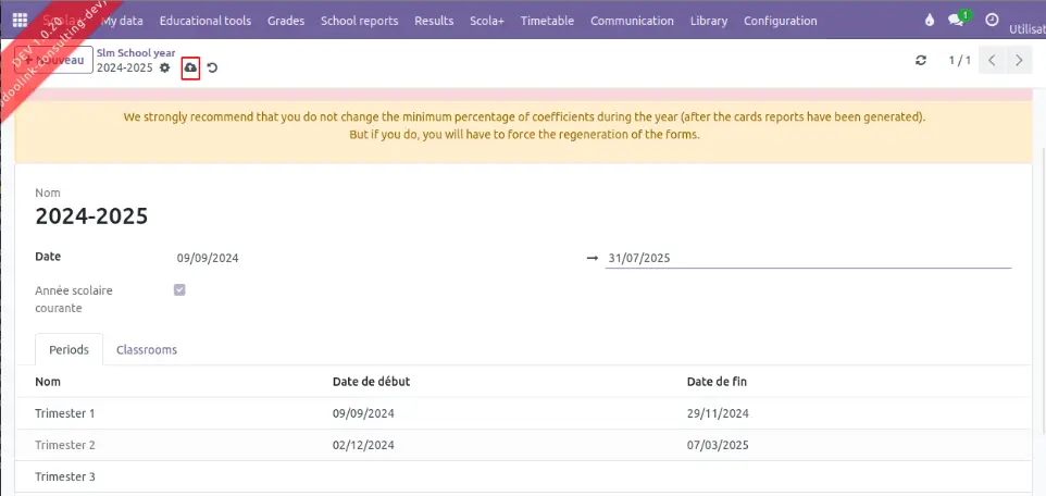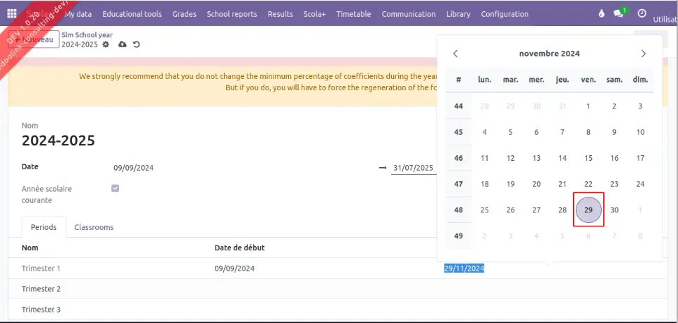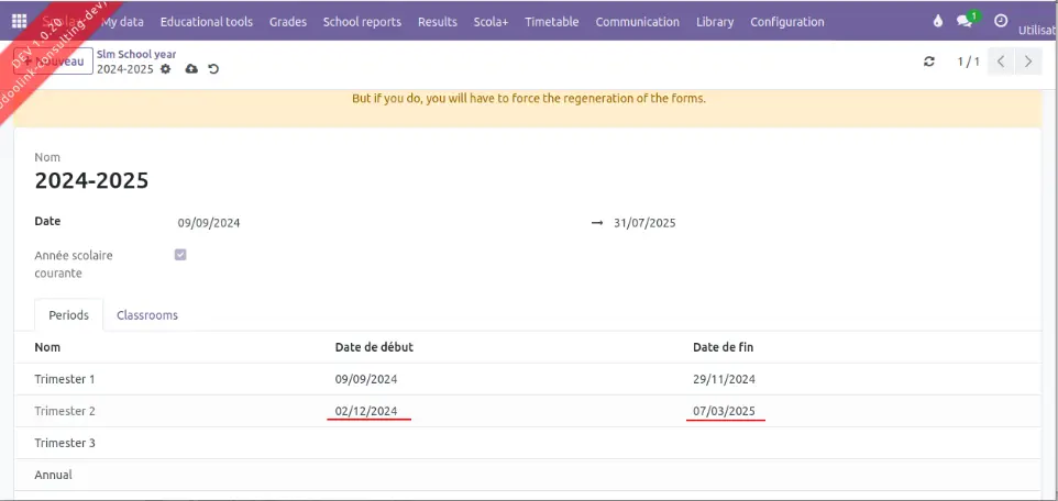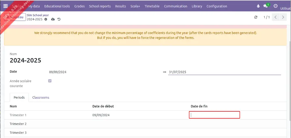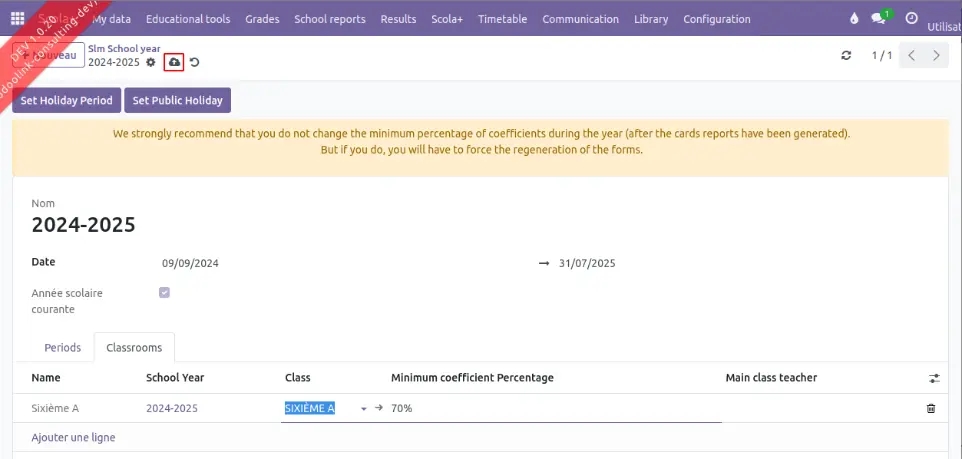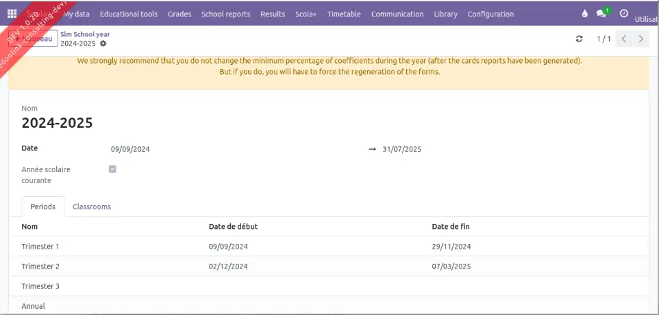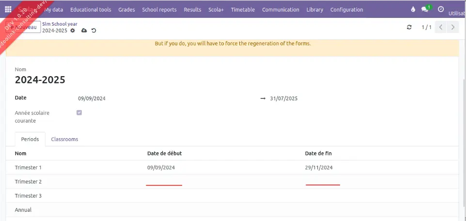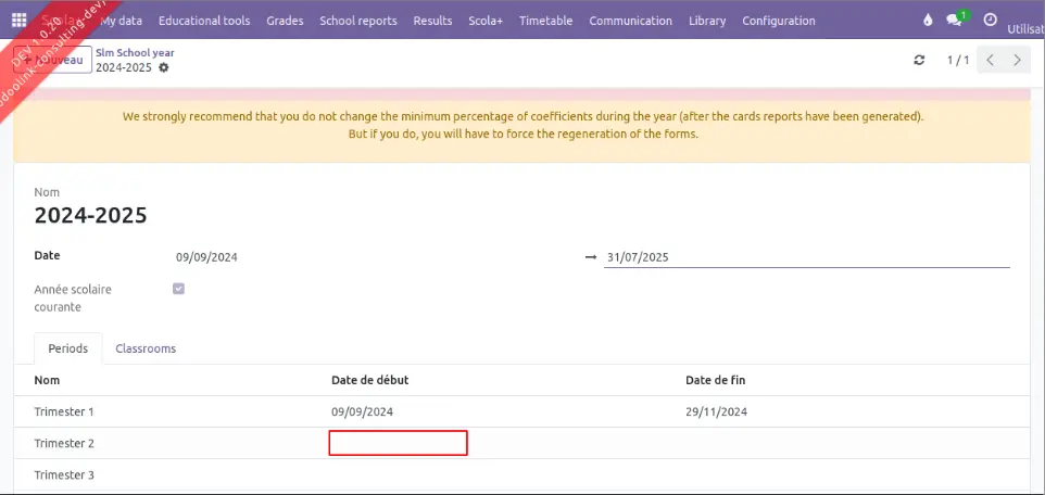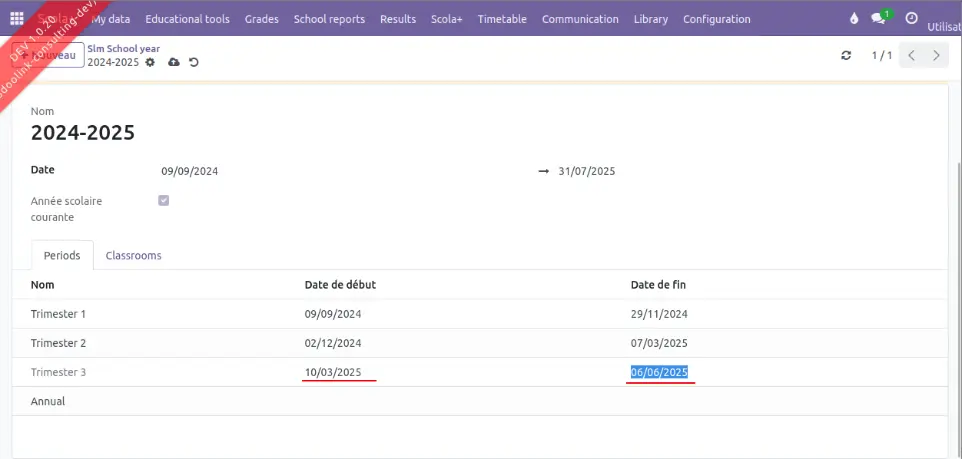 2a) Assurez-vous d'avoir déjà créé l’année scolaire avant de le sélectionner.
