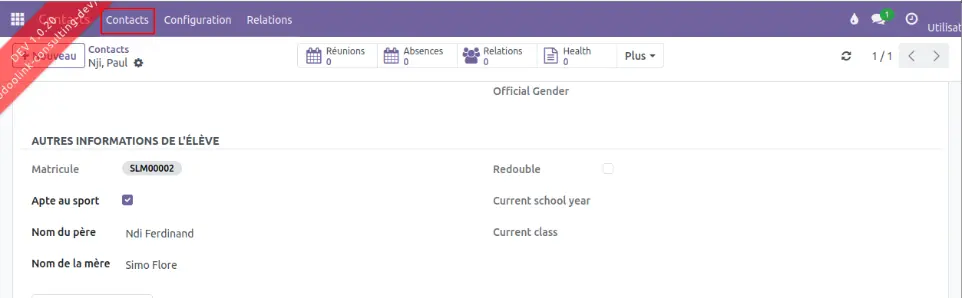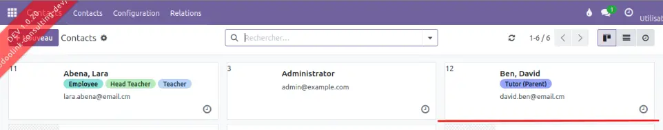 5) Cliquez sur Contacts dans le menu pour voir tous les contacts et vérifier que votre parent a bien