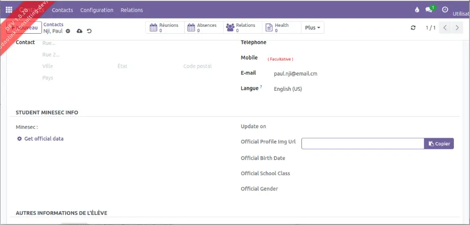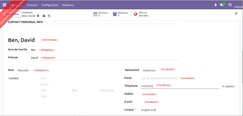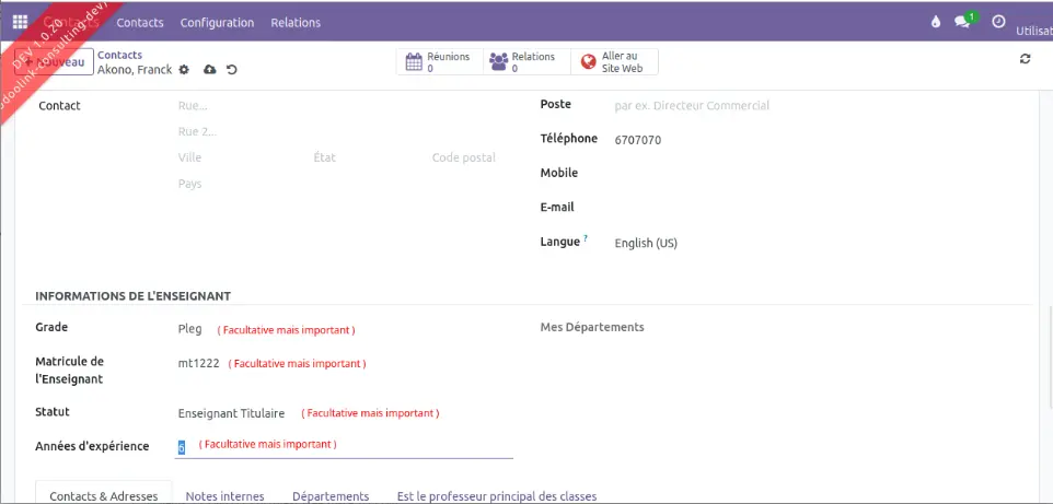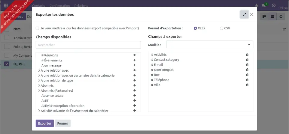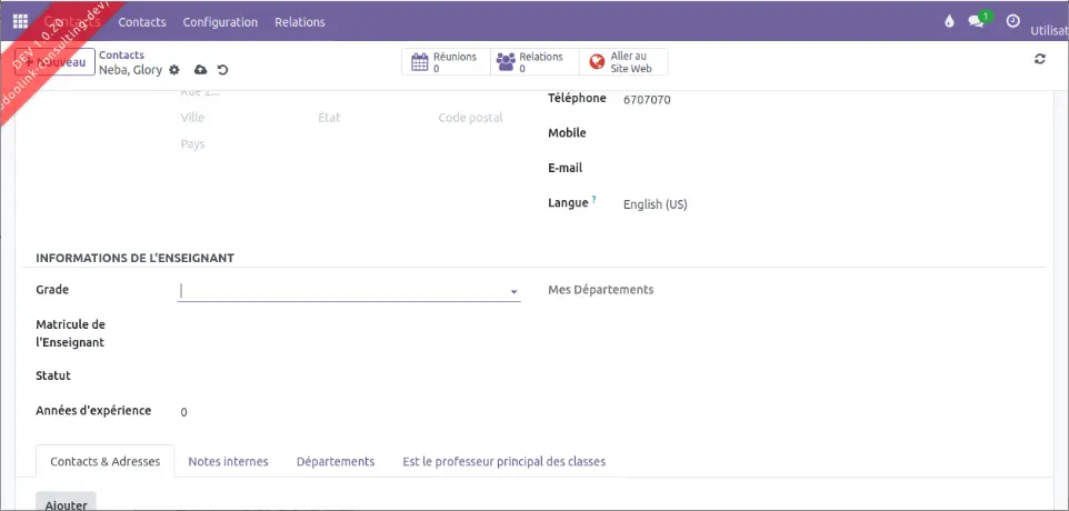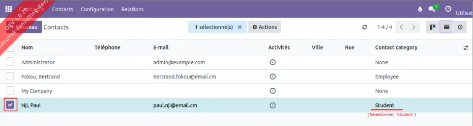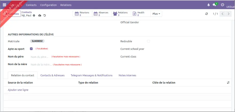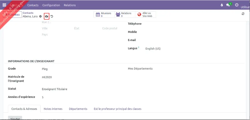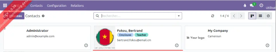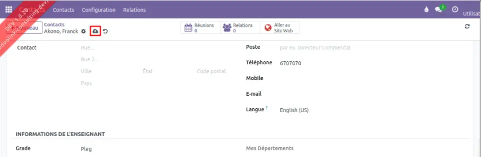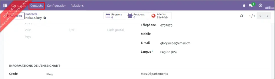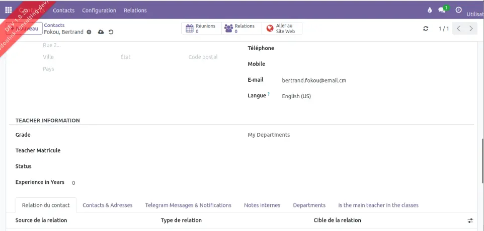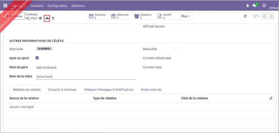 22. Retournez sur Odoo, dans votre contact sélectionné, et cliquez sur le bouton Activate Telegram