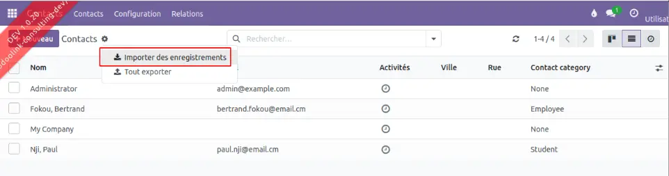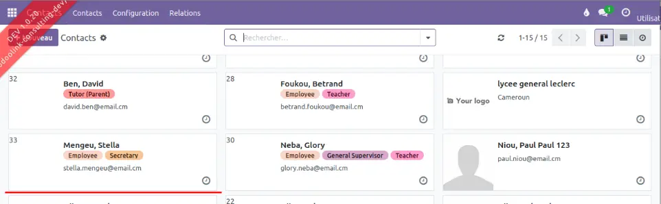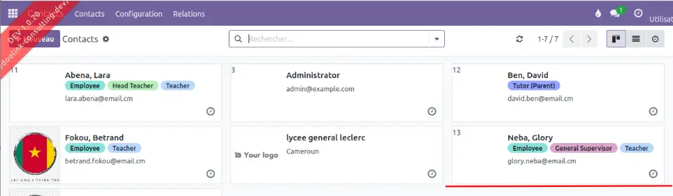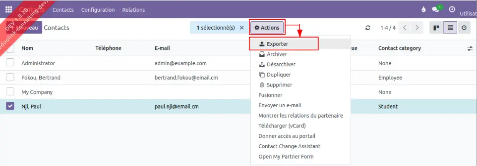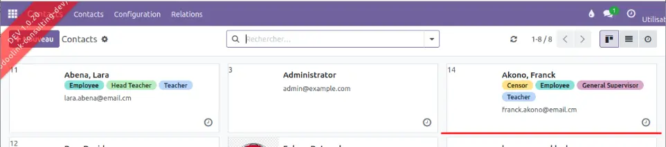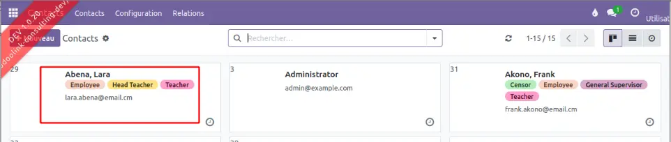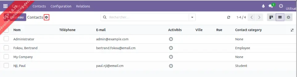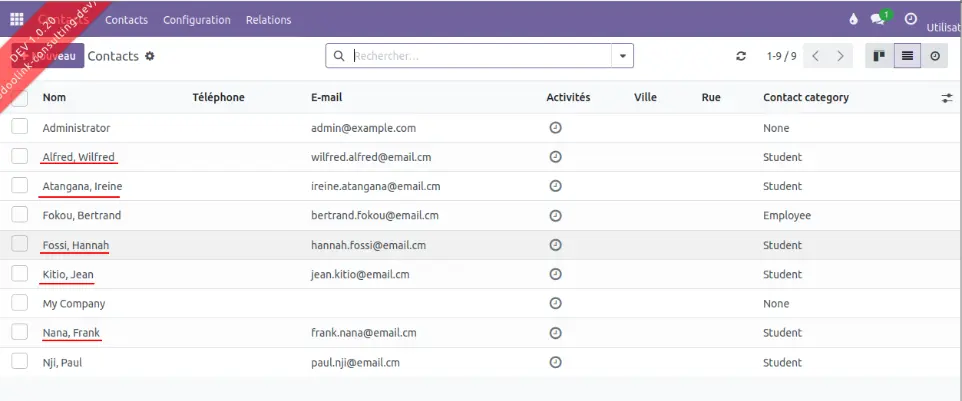 5) Cliquez sur Contacts dans le menu pour voir tous les contacts et vérifier que votre secretaire a