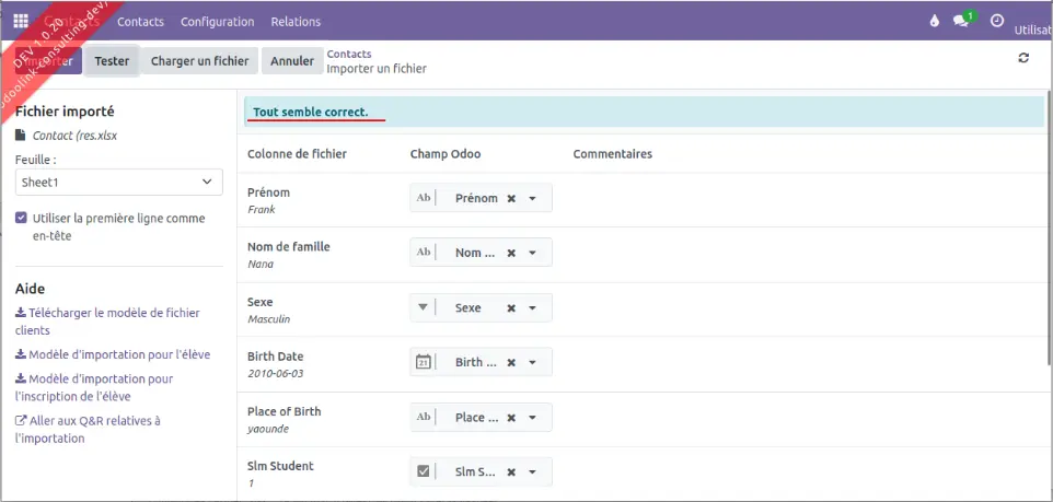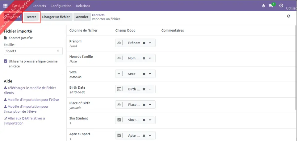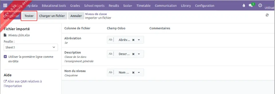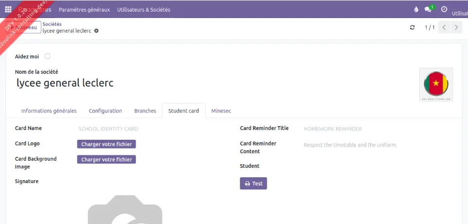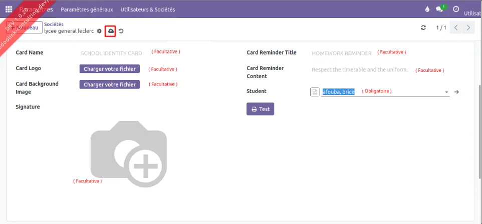 7. Retournez sur Student Card (Carte Scolaire) et cliquez sur Test pour visualiser l'aperçu de votre