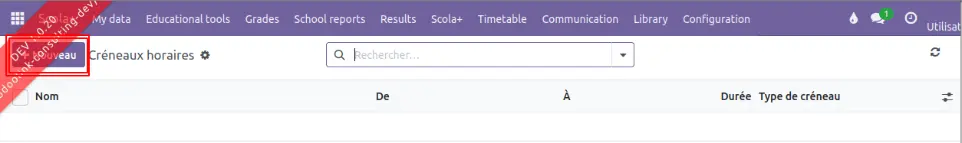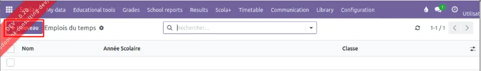 2) Sur la page Timetable (emploi de temps), cliquez sur Nouveau en bas à gauche du menu. (Voir