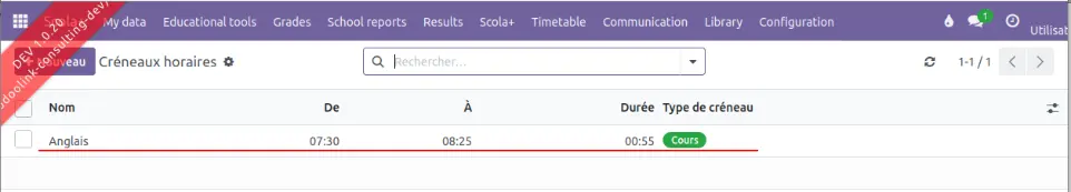 6) Si les informations s'affichent, cela signifie que vous avez créé votre emploi du temps avec succès.