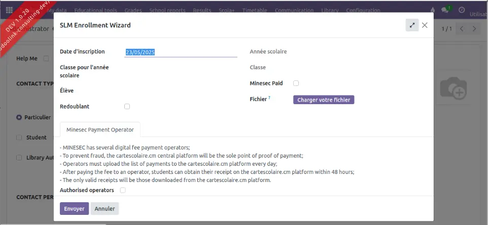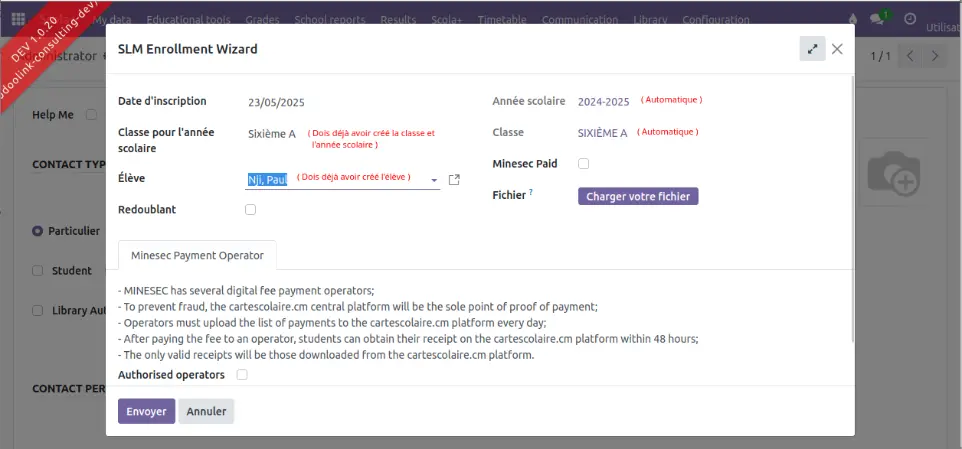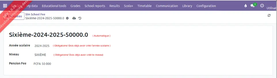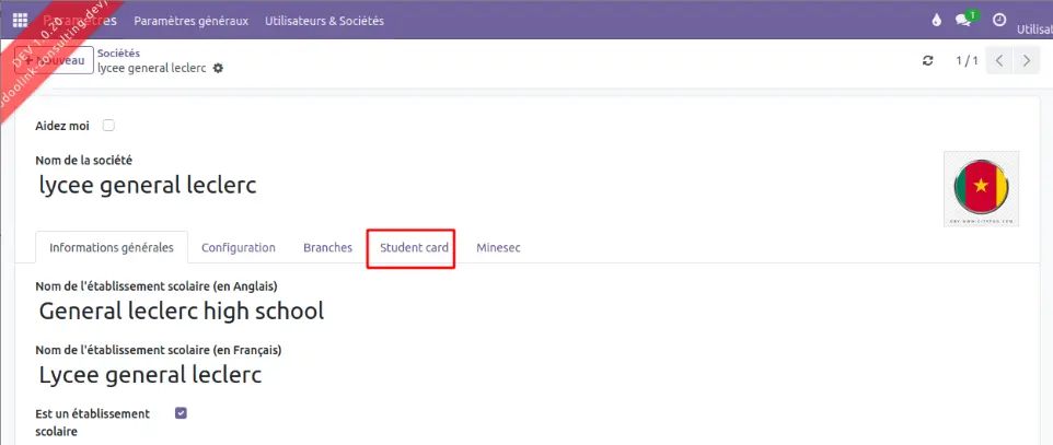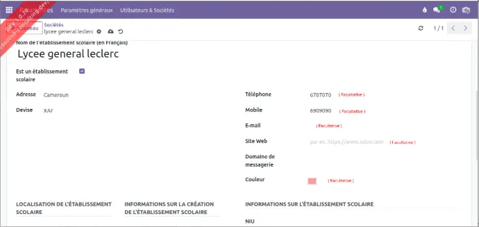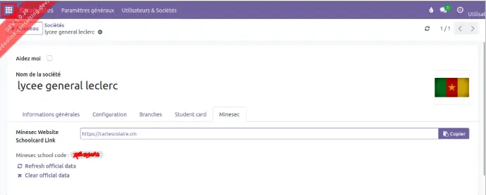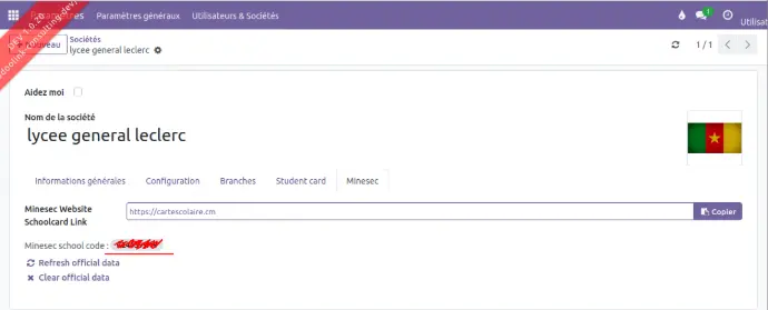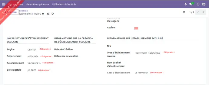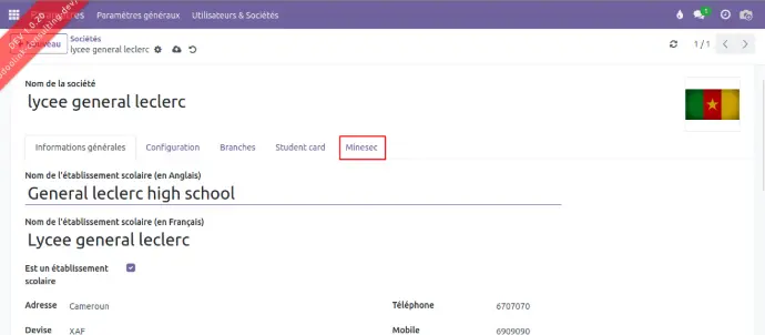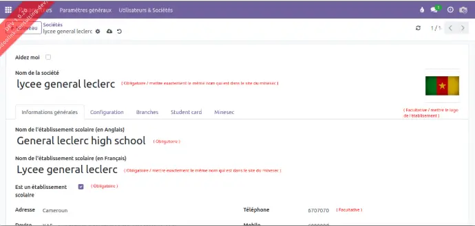 vous de bien renseigner les informations de l'établissement comme sur le site du MINESEC). (Voir