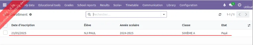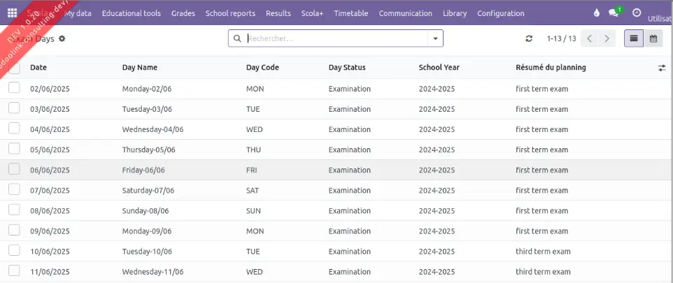 6) Si les informations s'affichent, cela signifie que vous avez créé votre période d’examen avec