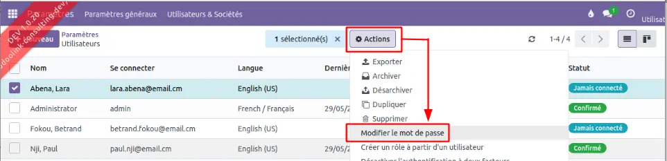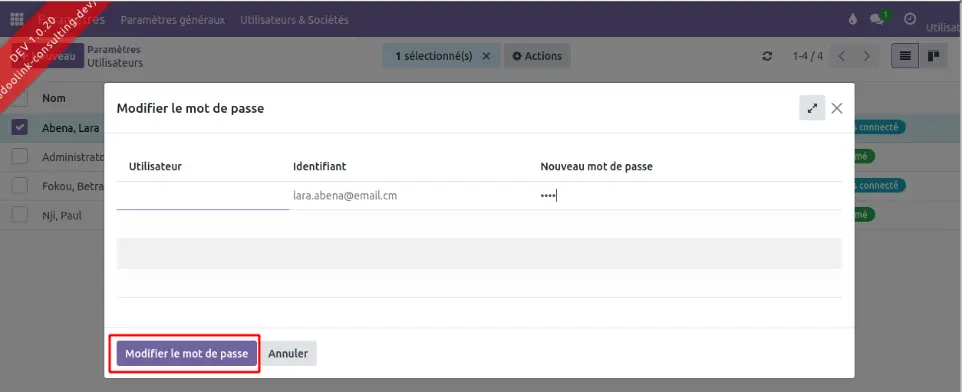 7. Vous serez ensuite redirigé vers la page Utilisateurs et le mot de passe sera modifié avec succès.