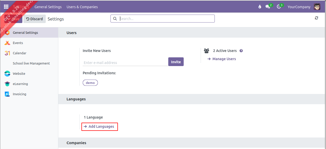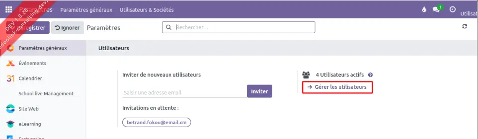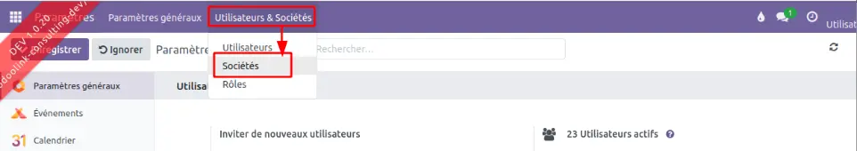 3. Puis, rendez-vous dans Utilisateurs et Sociétés, et sélectionnez Sociétés. (Voir Image 3)