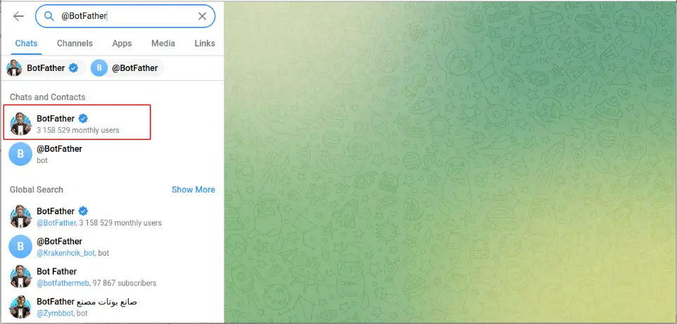 5. Ouvrez Telegram sur votre appareil portable ou ordinateur et recherchez @BotFather. (Voir Image