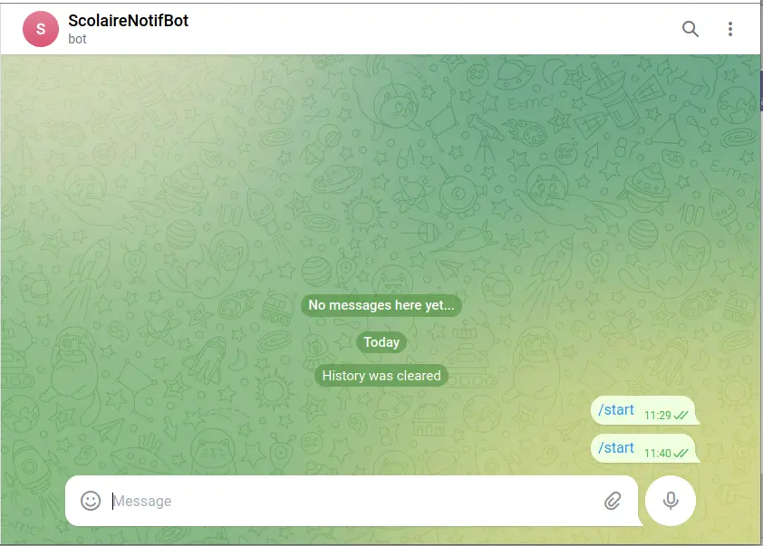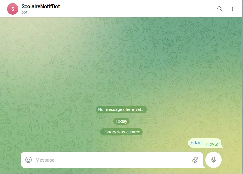 10. Si vous ne voyez pas le bouton START, vous pouvez envoyer le message /start pour démarrer