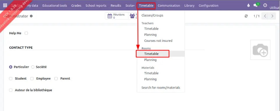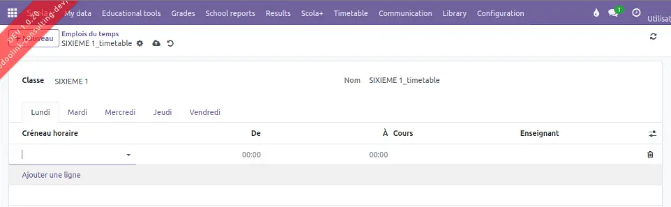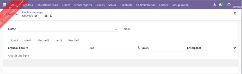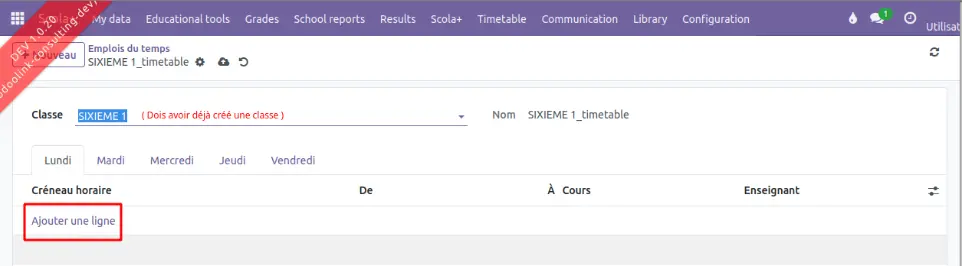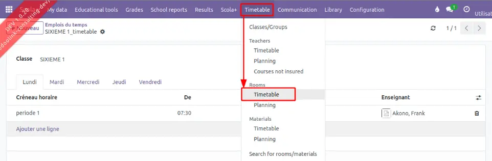 1) Allez dans le menu et cliquez sur Timetable (emploi de temps) en haut de l'écran, puis sur