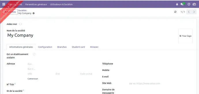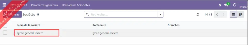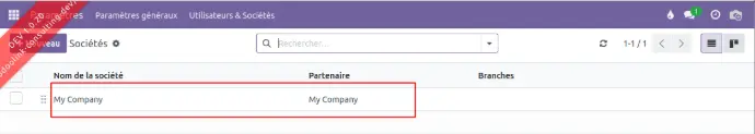 4. Cliquez sur la société existante ("my company") pour modifier ses informations. (Voir Image 14)