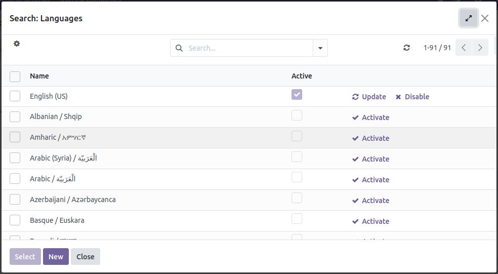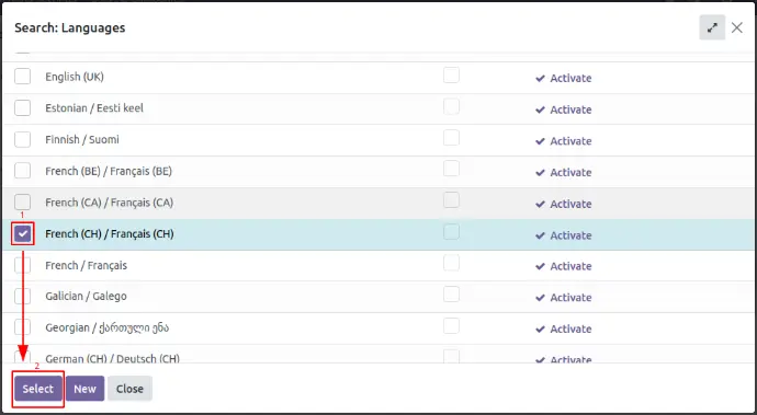 6. Cochez la case du Français et cliquez sur "select" (sélectionner). (Voir Image 9)