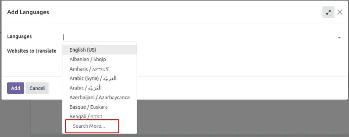 7. Ensuite, sur la page "Add language", cliquez sur "add" (ajouter). (Voir Image 10)
