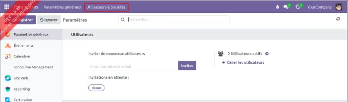 2. Dans "Paramètres", cliquez sur "Utilisateurs et société" en haut de l'écran. (Voir Image 12)