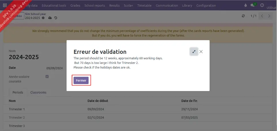 10. Une erreur sera produite parce que la période de vacances n’a pas été définie. (Voir Image 19)