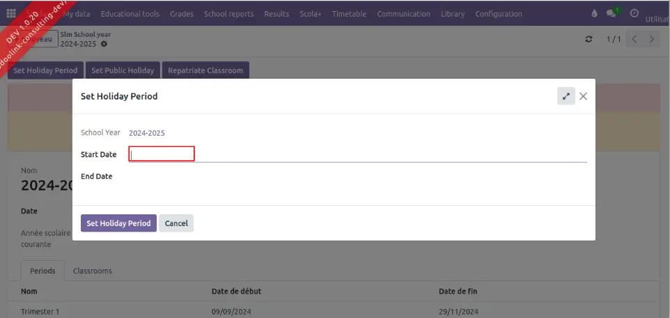 14. Entrez les informations et définissez la prochaine période de vacances après le trimestre 1. (Voir
