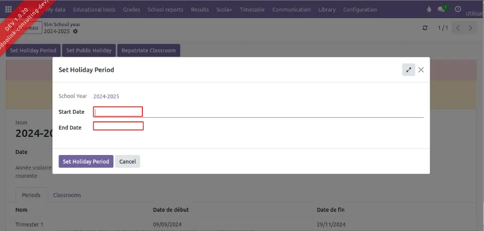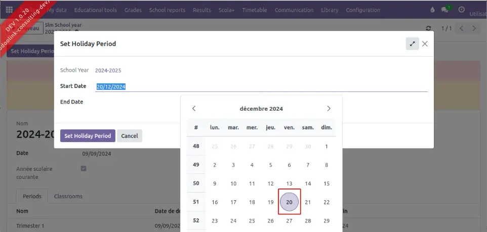 19. Définissez la prochaine période de vacances après le trimestre 2. Cliquez sur définir une période