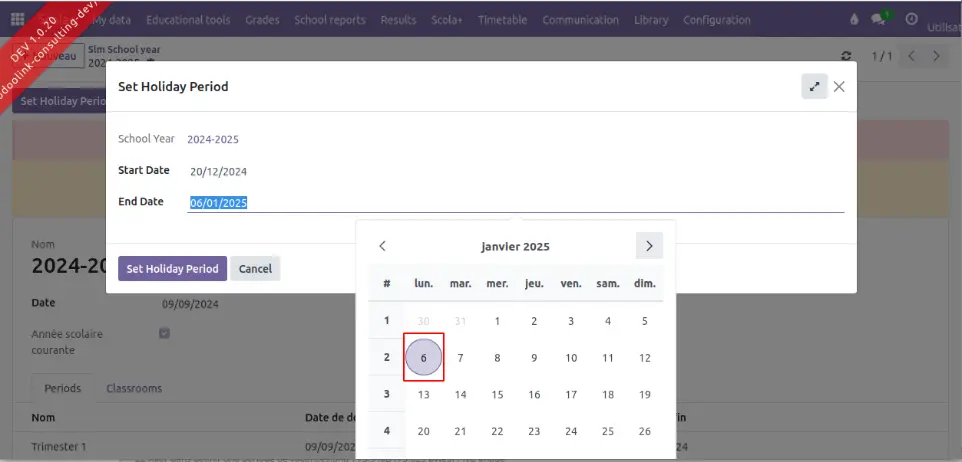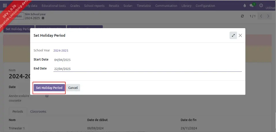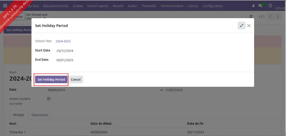 21. Cliquez sur définir votre période de vacance (Set Holiday Period) pour enregistrer les