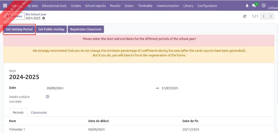 15. Cliquez sur définir votre période de vacance (Set Holiday Period) pour enregistrer les