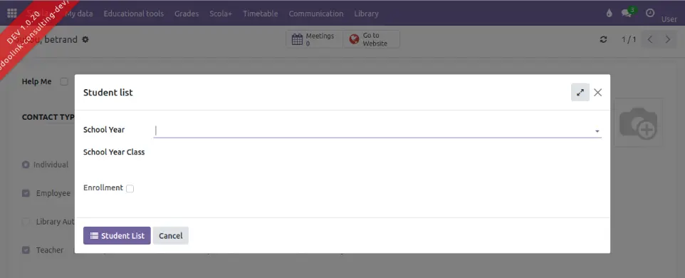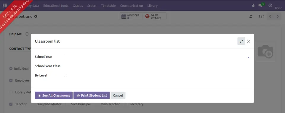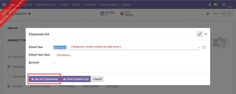 2.2. Choisissez la classe dans le champ School Year Classe, ou laissez vide pour voir toutes les