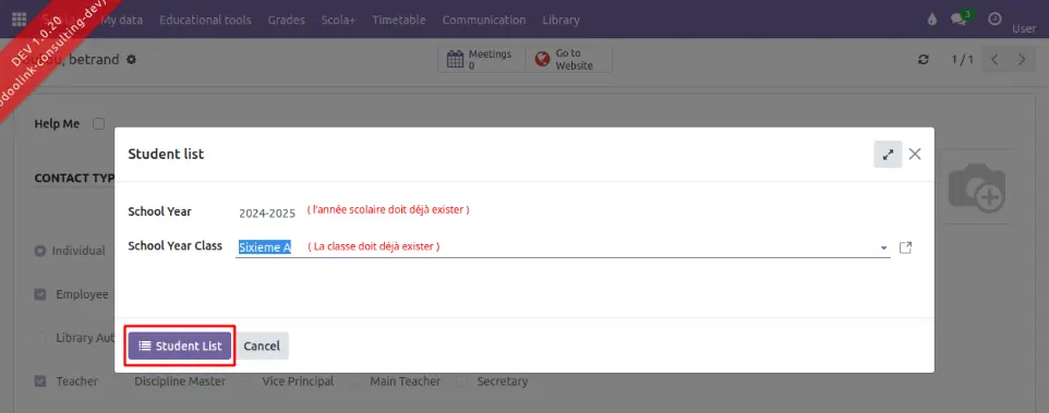2.3. Cliquez ensuite sur Student List. (Voir Images 2, 3)