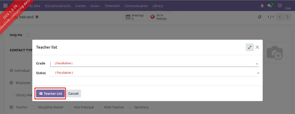 2. Remplissez les informations relatives à l'enseignant ou laissez les champs vides. Cliquez ensuite