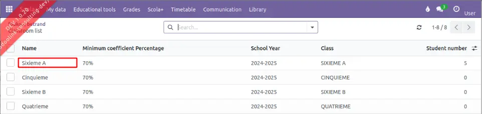 3. Sur la page des classes, cliquez sur une classe. (Voir Image 4)