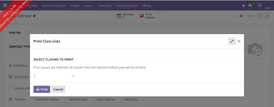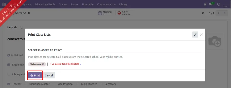 2. Assurez-vous que la classe existe, choisissez-la, puis cliquez sur Print. (Voir Images 2, 3)