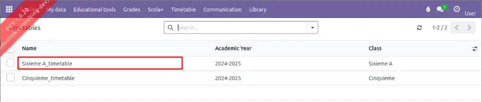 1. Allez dans le menu et cliquez sur Timetable en haut de l'écran, puis de nouveau sur Timetable.