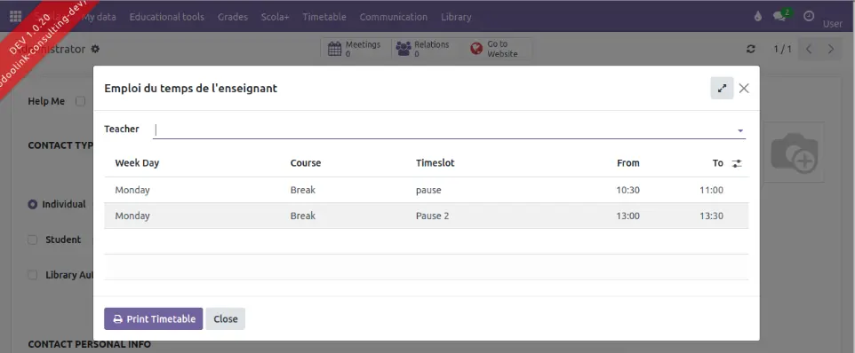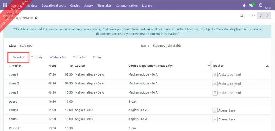 13 Consulter l'emploi du temps de l'enseignant dans Scola+