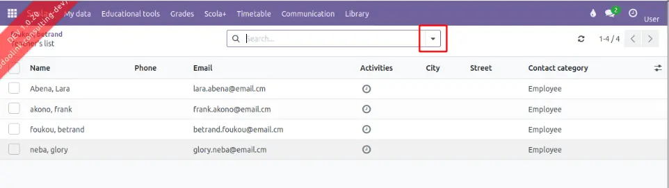 3. Vous verrez alors la liste des enseignants. Cliquez sur l'option de recherche (le bouton ou l'icône de