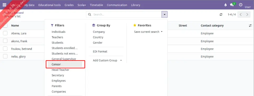 4. Choisissez l'option de filtre, par exemple pour voir uniquement les censeurs comme dans notre cas.