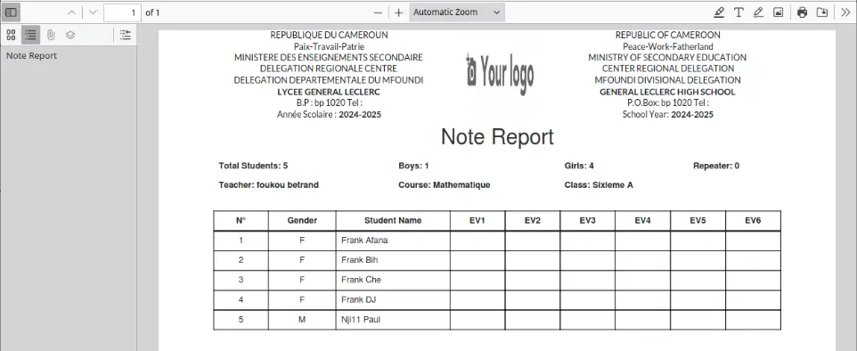 2. Un fichier PDF contenant le rapport de notes sera téléchargé et ouvert dans votre navigateur. Vous