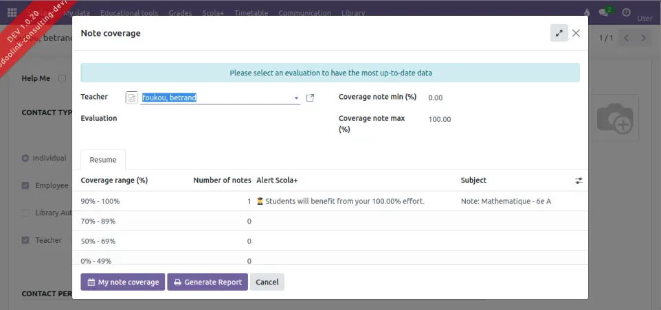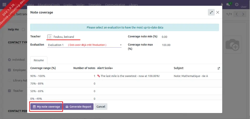 10 Voir le pourcentage de couverture de saisie de notes dans Scola+