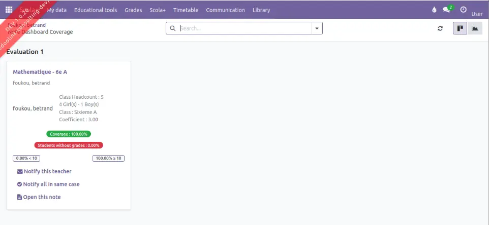 Voici comment consulter le pourcentage de couverture de saisie de notes dans Scola+ :