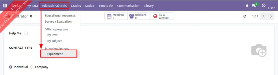 1. Allez dans le Menu et cliquez sur Educational tools en haut de l'écran, puis sur Equipments.