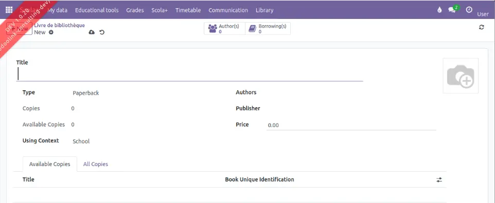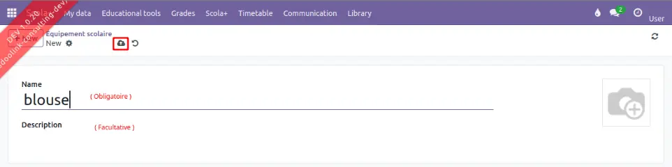 Voici comment créer un équipement ou une fourniture de cours dans Scola+ :