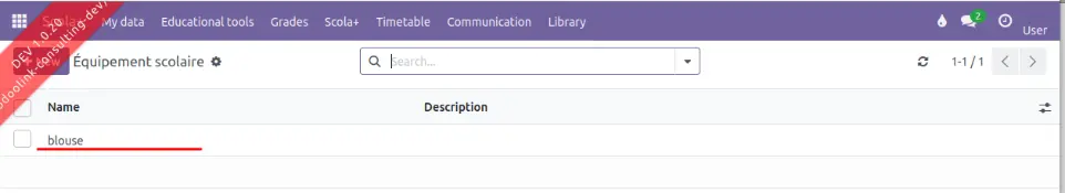 6. Si les informations de votre équipement ou fourniture scolaire s'affichent, vous aurez créé votre