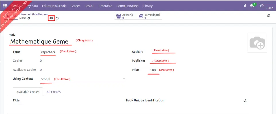 3. Remplissez les informations relatives au livre. Cliquez ensuite sur le bouton Enregistrer pour