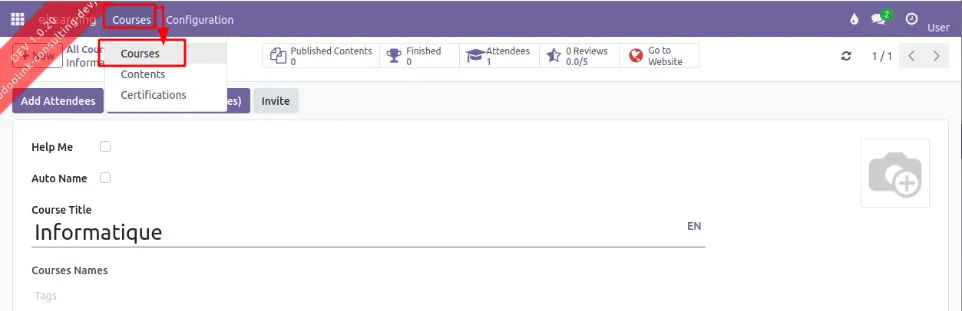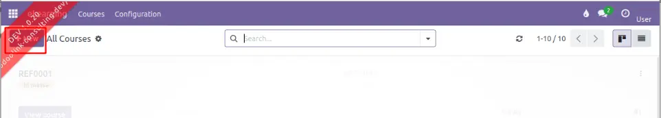 5. Allez sur la page Courses (Cours) pour vérifier que votre cours en ligne a bien été créé. (Voir