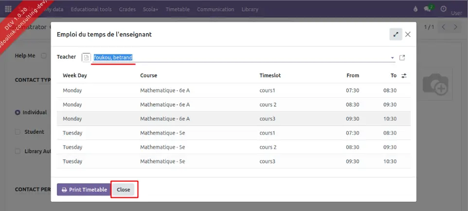 Pour consulter l'emploi du temps d'un enseignant dans Scola+, suivez ces étapes :