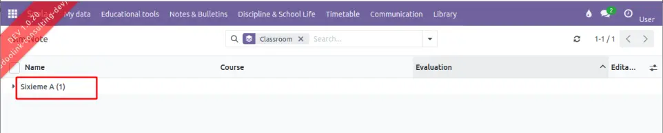 2. Cliquez sur la classe de votre cours. (Voir Image 2)