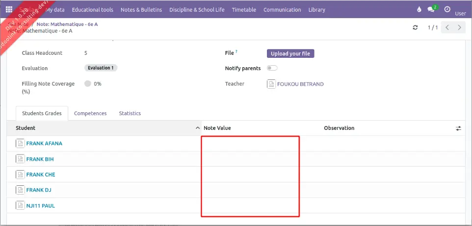 des notes non encore saisies sous "Students without grade" (en rouge). (Voir Image 4)