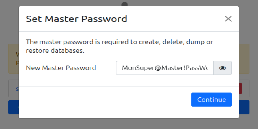 - Changer le Master Password pour sécuriser votre configuration (Retenez bien ce password pour télécharger vos données) Screen 1