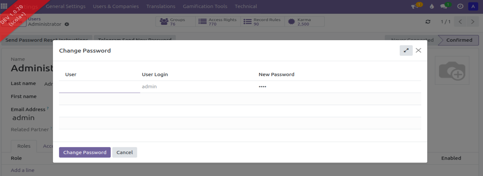 - Modifier le mot de passe admin pour sécuriser l'accès à votre configuration Screen 2